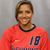 Right before the half, Richmond got a brilliant goal for the highlight reel. Junior Darian Podmajersky (Yorba Linda, California) was set up on the near sideline by senior Samantha Cicconi (Madison, New Jersey) and dribbled to the corner for a long pass just over the keeper to a flying Lindsay Egbers (Clifton, Virginia / Centreville HS), who lofted the ball into the upper 90 at point-blank range for the 2-0 lead. The goal came with just 43 seconds on the clock before the half. It was her first career goal.